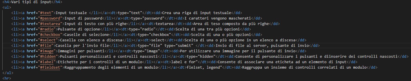 (visibili con visualizza sorgnte) da approfondire l'utilizzo