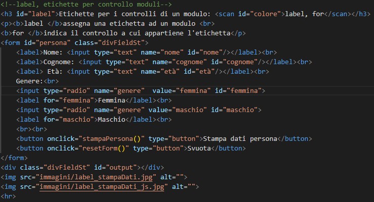 label assegna una etichetta ad un modulo for indica il controllo a cui appartiene l'etichetta