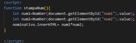 Esempio di stampa di una moltiplicazione tra due numeri con js: