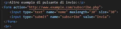 L'attributo value="Invia" specifica le parole che devono comparire sul pulsante di invio