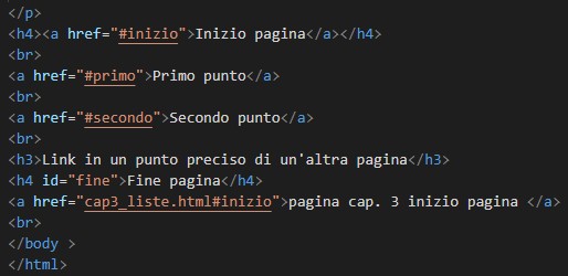 Viene utlizzato per identificare un punto della pagina a cui puntare con un link