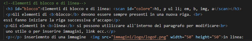 Gli elementi di blocco devono essere sempre presenti in una nuova riga.
